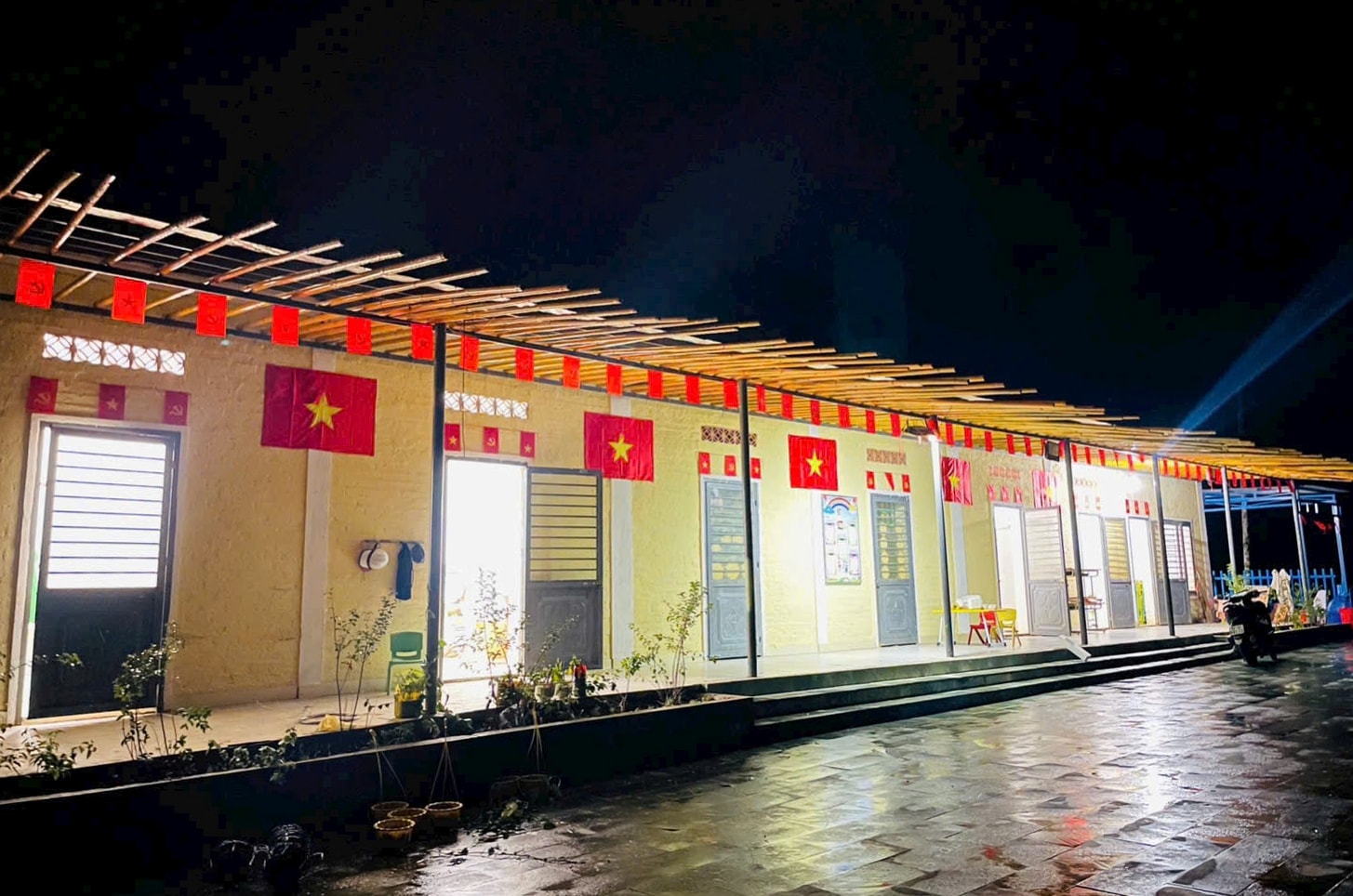 Thắp sáng điểm trường Tăk Pổ từ nguồn điện năng lượng mặt trời. Ảnh: Điểm trường cung cấp