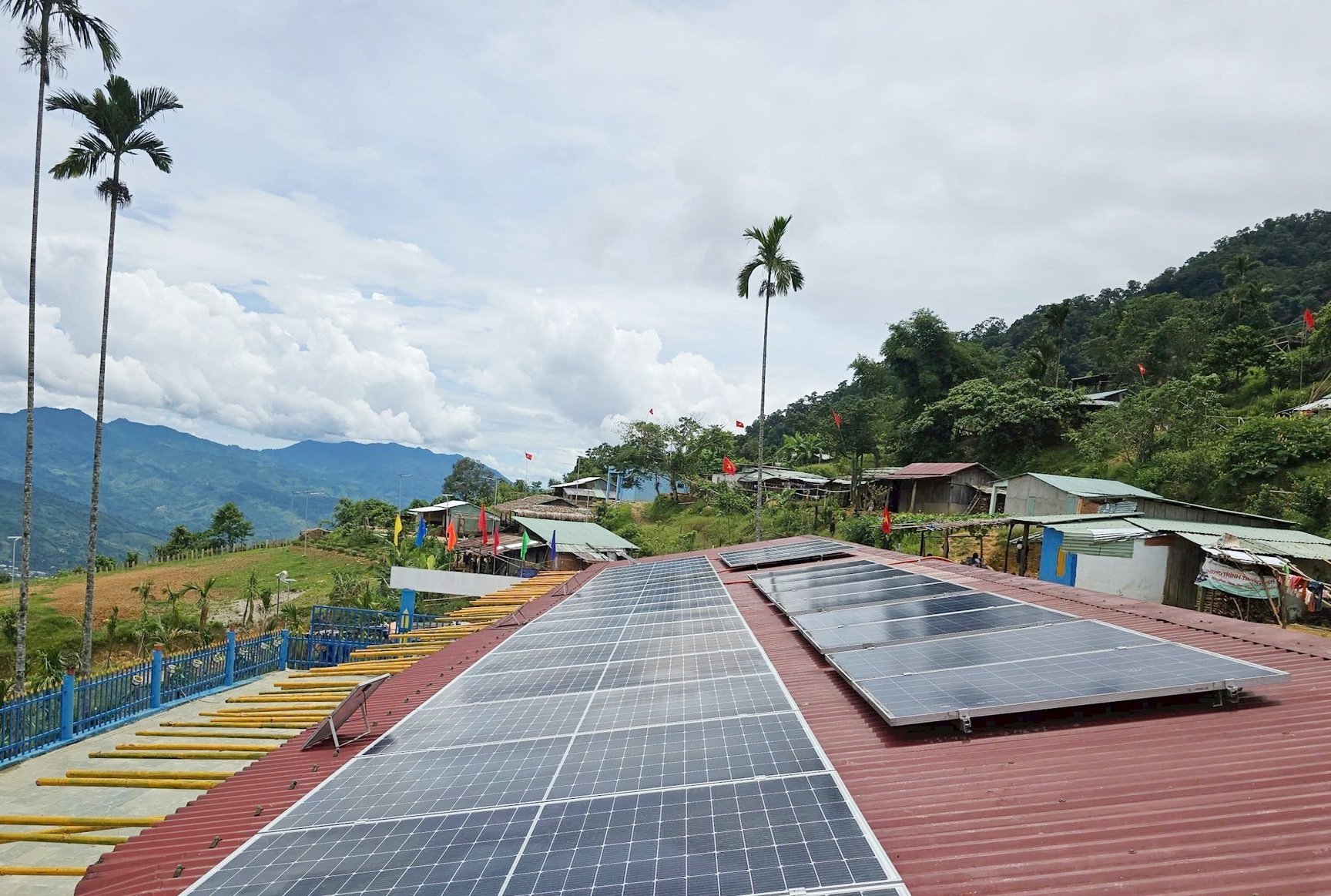 Đến nay, dự án hoàn thành lắp đặt hệ thống 22 tấm pin năng lượng mặt trời trên mái nhà, pin lưu trữ, tủ điện và nhiều vật tư, phụ kiện khác. Qua đó, phục vụ các thiết bị điện cơ bản cho điểm trường và 37 hộ dân làng Tăk Pổ.
